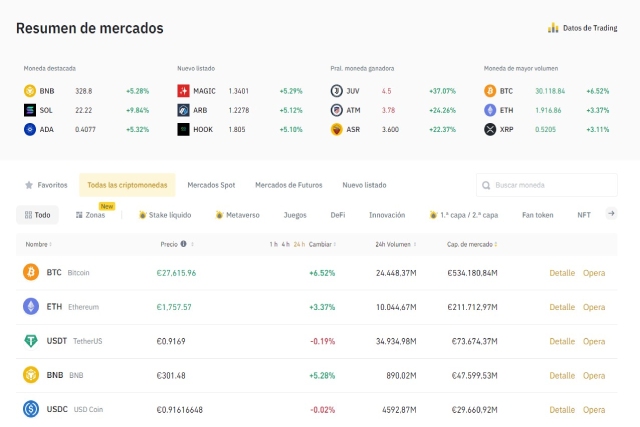 - Binance: Proporciona una amplia gama de criptomonedas y herramientas de trading.